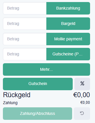 Die Kassenoberfläche besteht aus mehreren Abschnitten:
