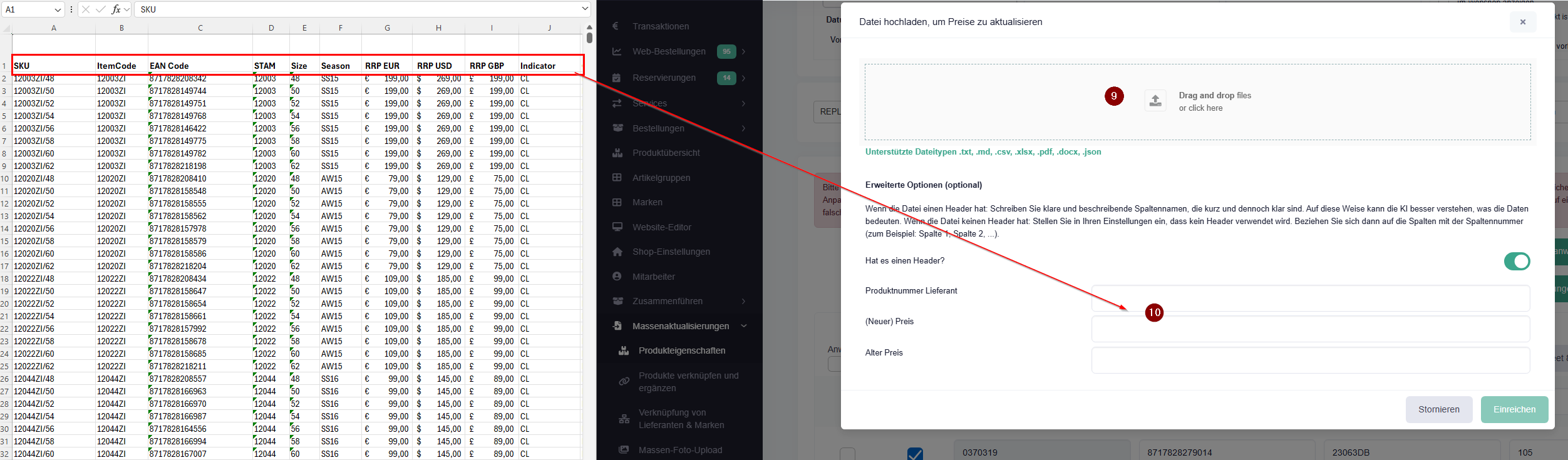 Eine Preisliste hochladen und alle Preise auf einmal aktualisieren
