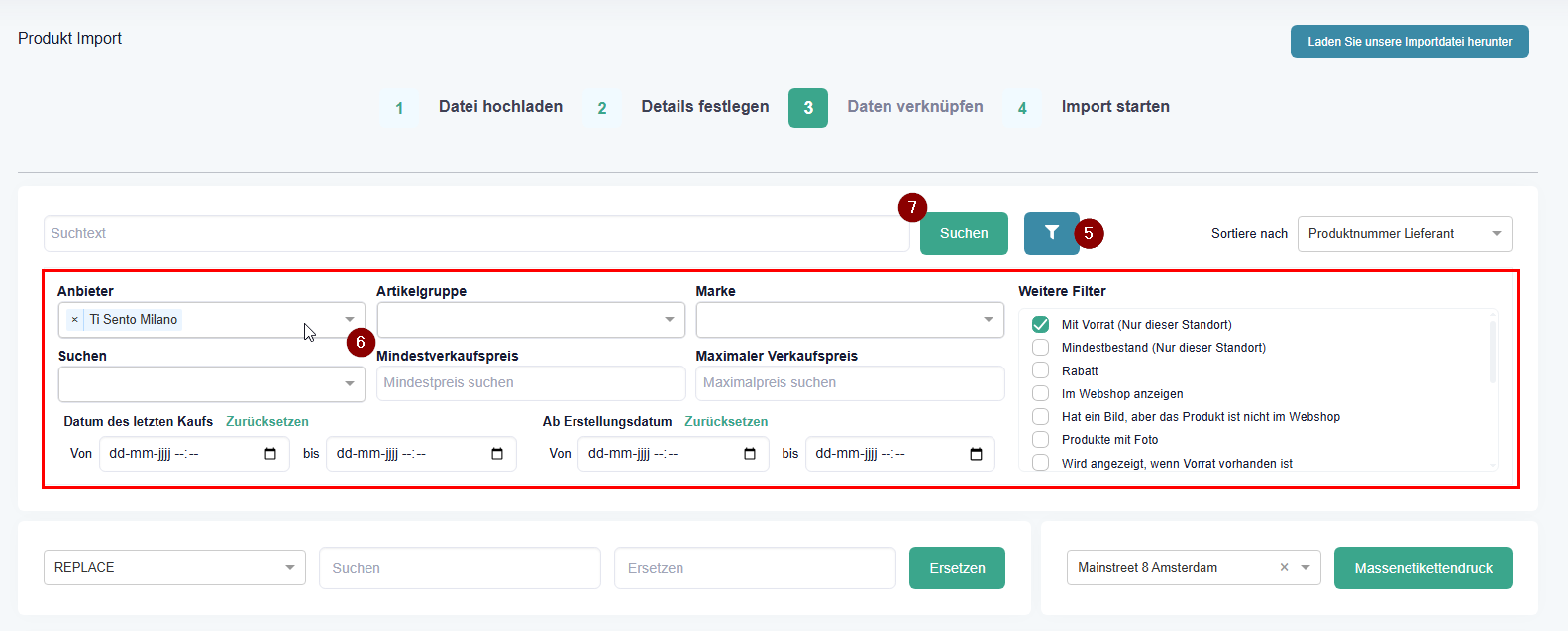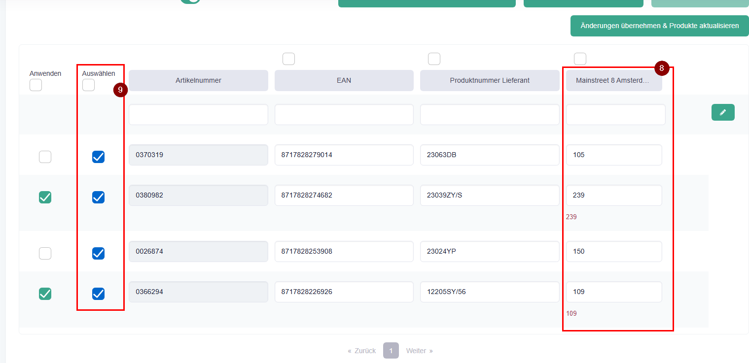 Produkte filtern, manuell anpassen und anschließend gesammelt aktualisieren