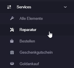 - Klicken Sie im Menü auf "Dienste" und dann auf die Überschrift 'Reparieren'.