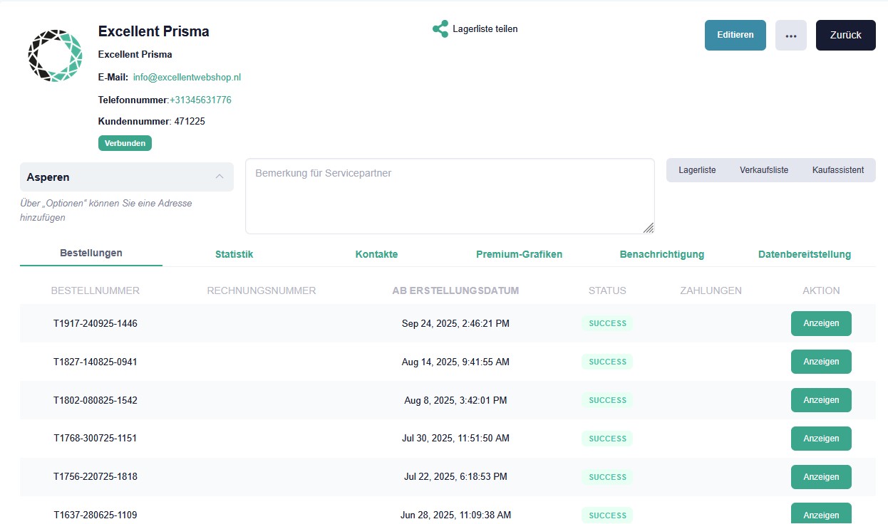 Lieferanten - Lagerliste, Verkaufsliste, Kaufassistent