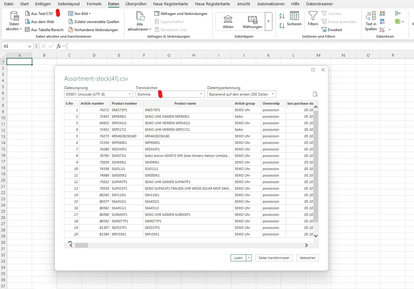 - In der Vorschau das Trennzeichen auf Komma stellen.
