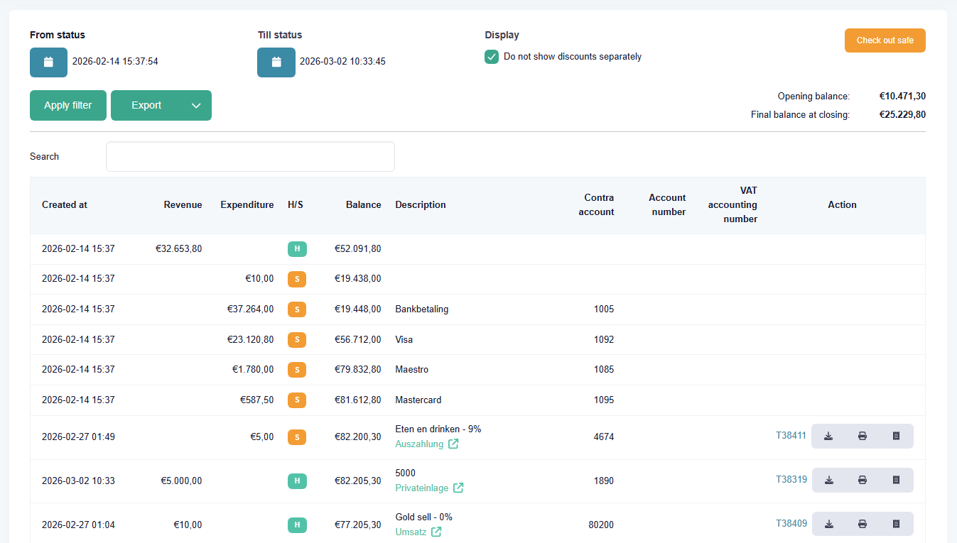 Track all cash sales of products and assign them to the correct VAT rates (for example 21% or 9%).