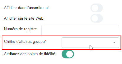 Afficher dans l'assortiment: Réglez ce commutateur 'Active' si vous voulez afficher le groupe d'articles sous la rubrique " Groupes d'articles".