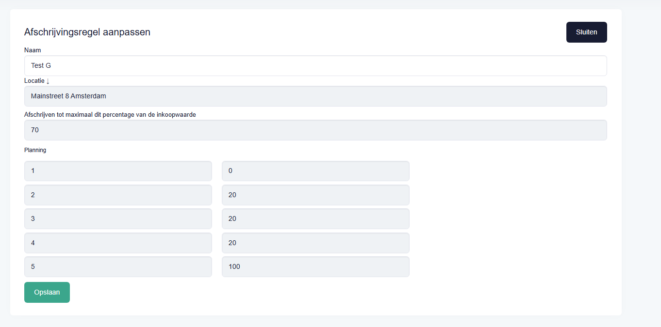 9. Vul de gewenste gegevens in voor deze afschrijvingsregel: