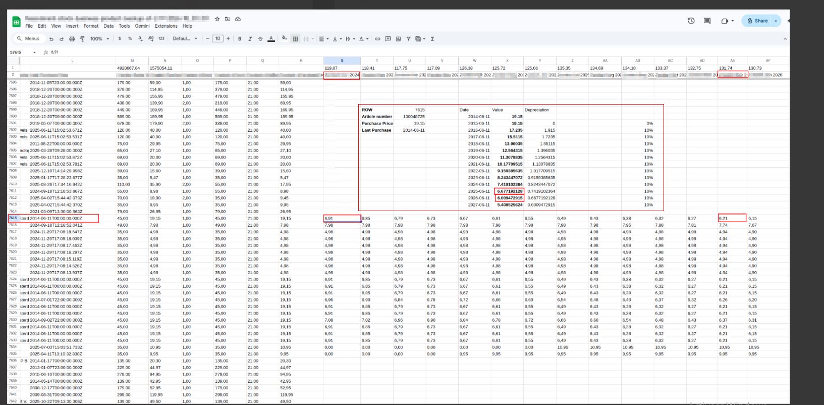 De inkoopprijs op de productpagina blijft altijd de prijs waarvoor het product is ingeboekt. De inkoopwaarde na afschrijving is zichtbaar in de export van de Excel via assortiment (zie de stappen hieronder bij Afschrijvingen zien in aparte kolommen in Excel).