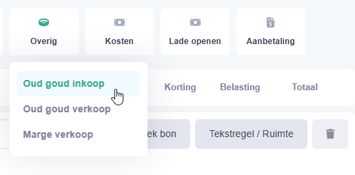 Goudinkoop wordt bij het selecteren van 'Geld' exclusief BTW verkocht. Dit moet op een losse bon zonder andere artikelen worden gezet.