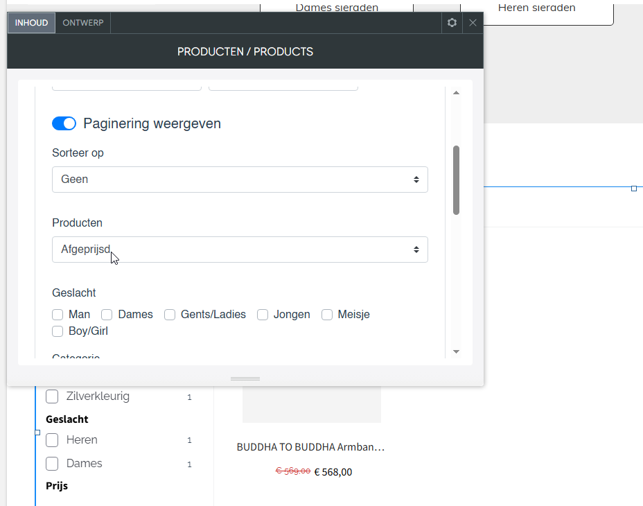 4. Voeg de widget Producten / Products toe.