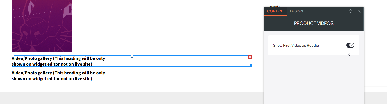 3. Voeg de widget Product videos 2x toe onder de afbeelding galerij op de gewenste plek.